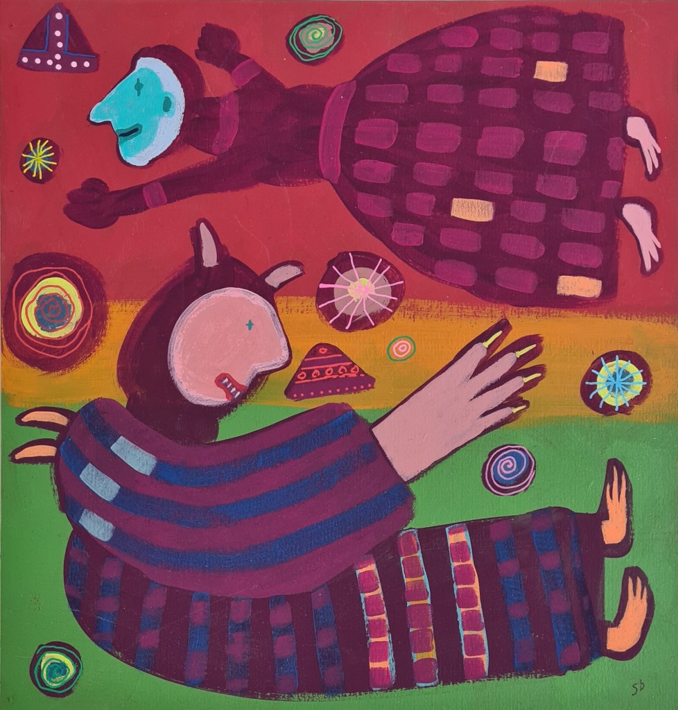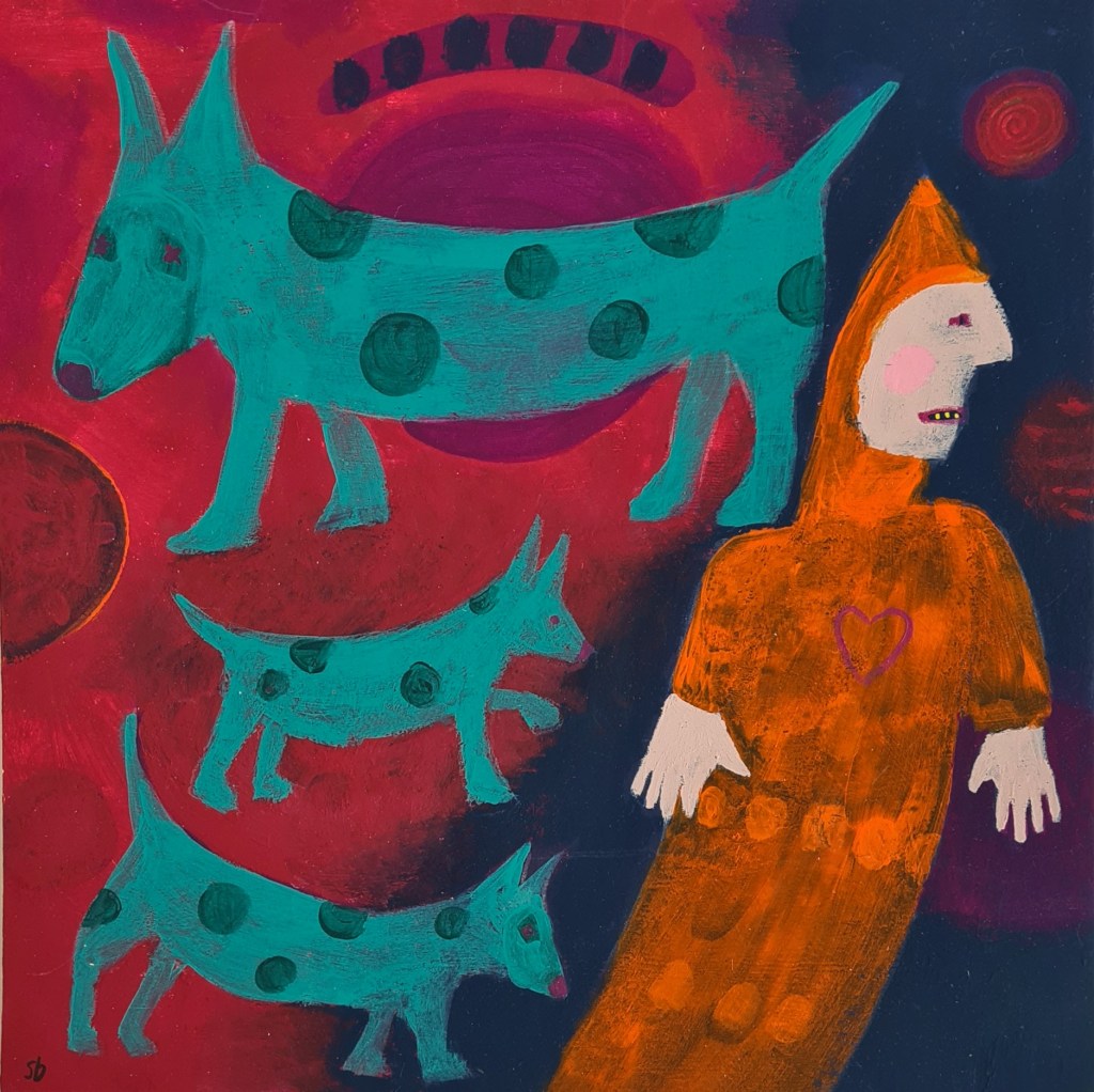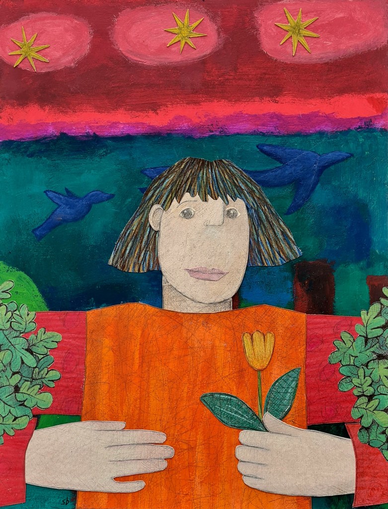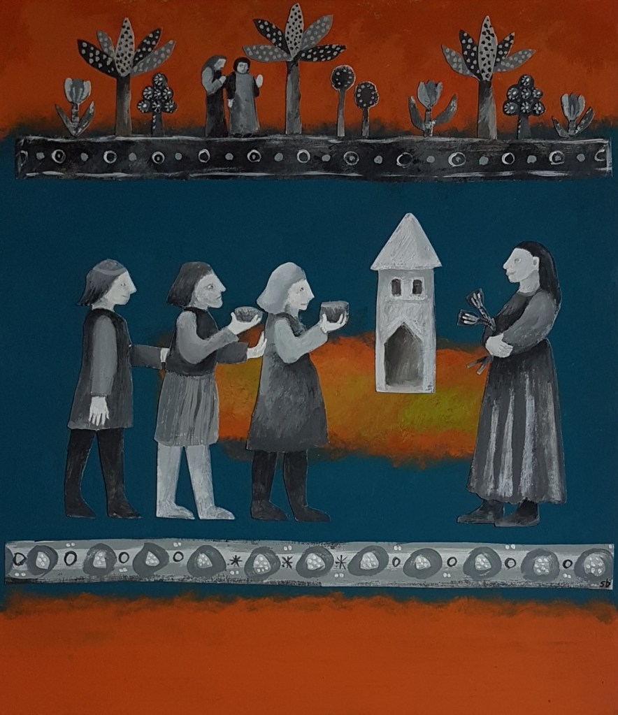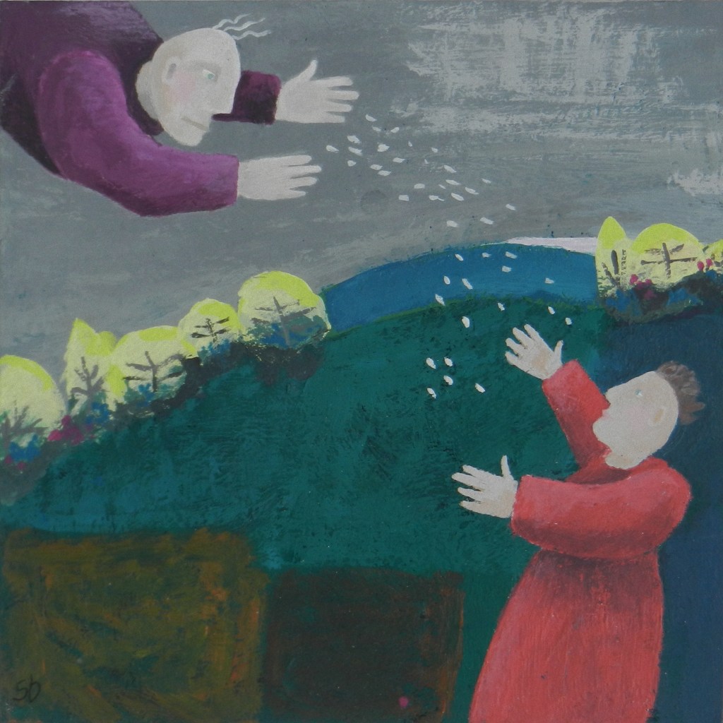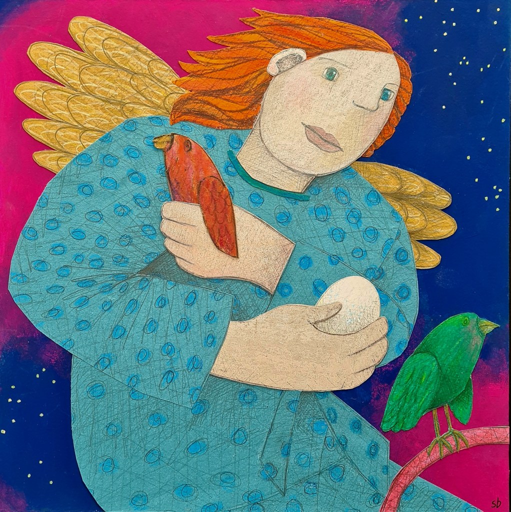 Painting Bringing gifts paint and collage Flying family paint and collage The triplets at large paint and collage A petal dropped paint and collage It’s over there paint and collage Time flies gouache & collage Presentation gouache & collage Angel of the egg gouache & collage First snow gouache Circus girl on a dog gouache Circus girl on a wire gouache Setting out gouache Going home gouache Foundling gouache Sowing gouache Making a nest together gouache, paper, pencil Pandora gouache Protecting gouache Angel picking a small bouquet gouache Wait gouache Getting ready for the party gouache Beloved serpent gouache Choosing gouache We can fly gouache Kindling gouache Free from the wicked net gouache Treasure saved from the fire gouache Share this: Click to share on X (Opens in new window) X Click to share on Facebook (Opens in new window) Facebook Like Loading...